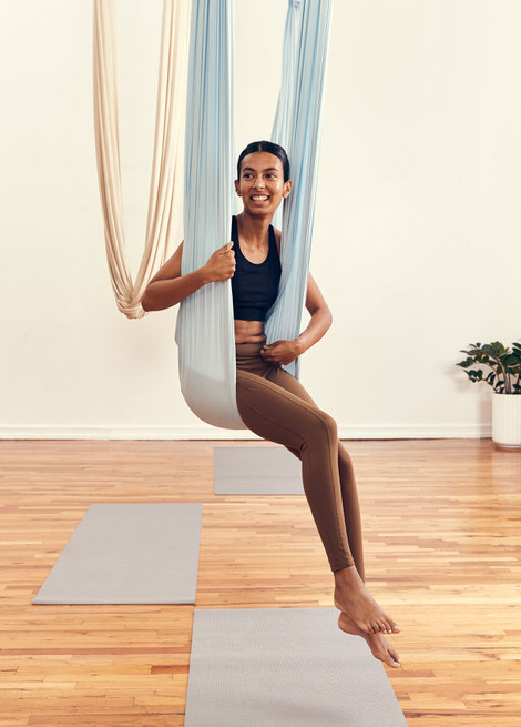 No matter your experience in traditional yoga, aerial dance, or gymnastics, if you’ve never taken Aerial Yoga before — this is the place to start.