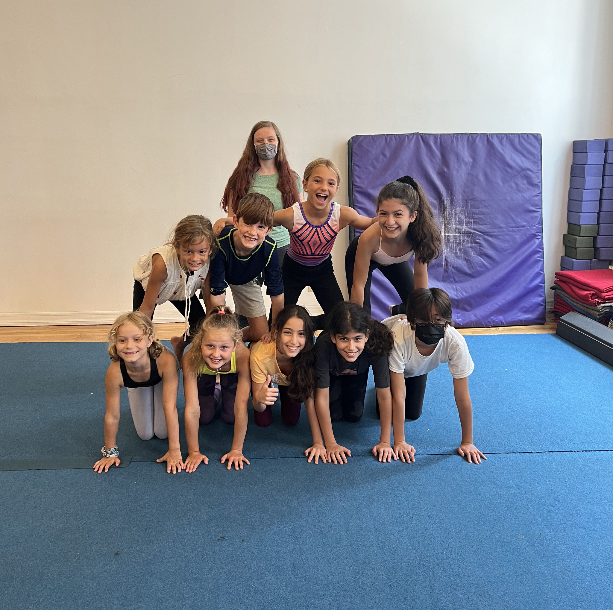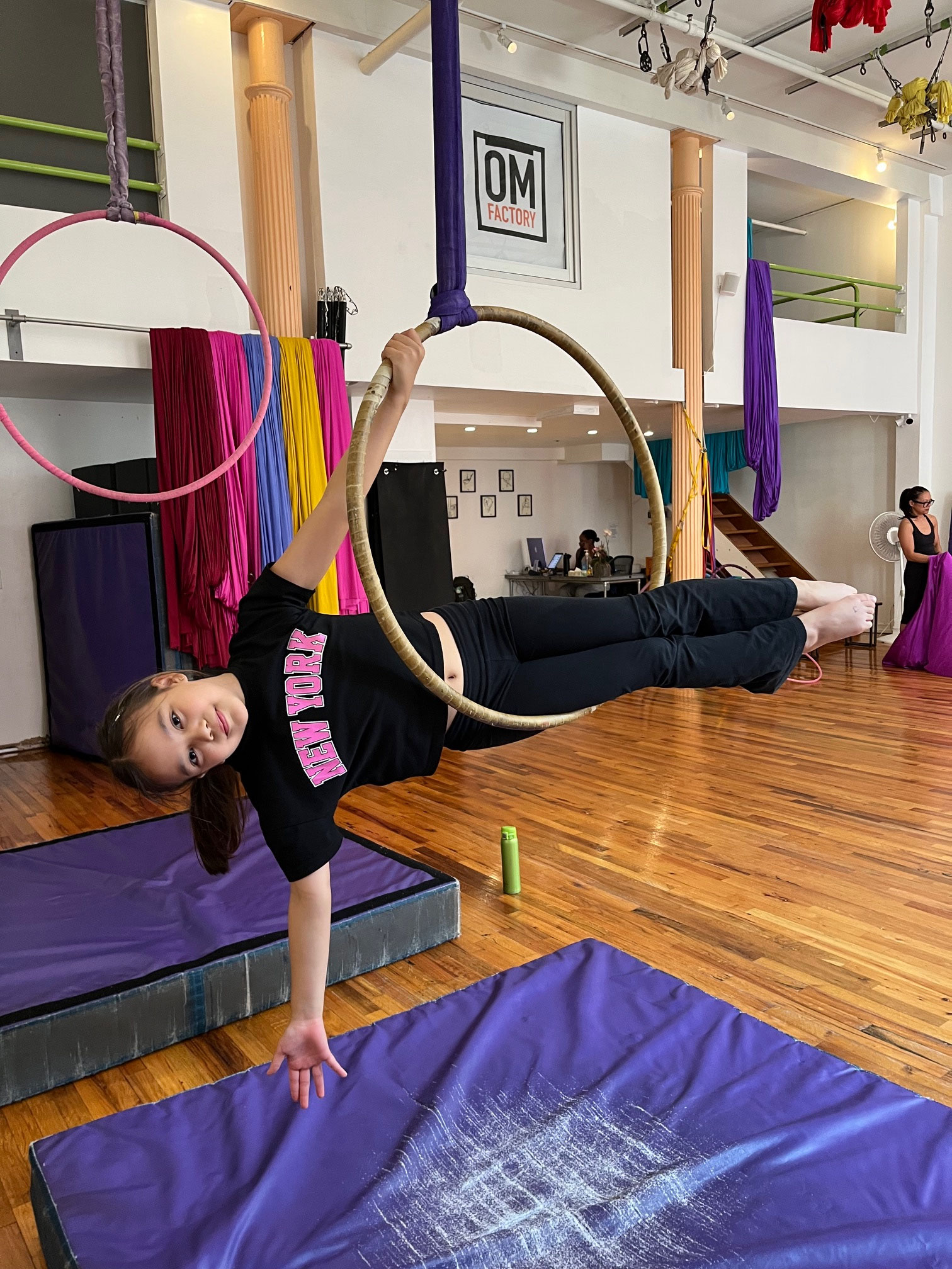 All are welcome from beginner to advanced & everything in between! Om Factory Summer Circus Camp is open level — we work with kids to develop skills & challenge their bodies. Ages 7+